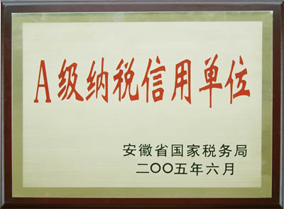 我公司被安徽省國(guó)稅局評(píng)為“A級(jí)納稅信用單位”