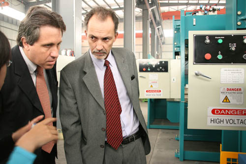 Aldo Strobbe Turk先生和Michael Can先生分別是秘魯一家專業(yè)機械進出口公司的采購經理和銷售經理。他們此行的目的是對我公司進行實地參觀考察,并尋求以中德在秘魯獨家代理的形式與中德達成合作意向。公司領導熱情地接待了兩位外商。公司領導首先給秘魯客商介紹了我公司近年來產品的研發(fā)、生產、銷售情況以及我公司產品在國內外市場的影響和地位。隨后陪同外商參觀了成品車間并現場演示運行了機器,裝配車間,大件車間和零件倉庫。參觀完后,兩位秘魯客商都對我公司產品的機型型號、生產制造技術、零配件等諸多方面非常滿意,并愿以在秘魯獨家代理的形式與中德建立長期穩(wěn)定的合作關系。