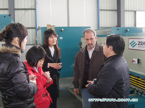 Haiyl A.AI Rawy先生對中國機(jī)械行業(yè)尤其是剪板機(jī)折彎機(jī)非常的熟悉,他表示他們非常重視機(jī)器的質(zhì)量,來中德也是由于中德機(jī)器在海內(nèi)外都享有良好的聲譽(yù)。參觀前,Haiyl A.AI Rawy還特意詢問我們在阿聯(lián)酋有沒有代理,當(dāng)公司領(lǐng)導(dǎo)回答說目前還沒有時(shí),他釋然一笑,表示希望能夠與中德建立良好的合作關(guān)系。在中德的成品車間,Haiyl A.AI Rawy先生聽取了我公司營狀況及近遠(yuǎn)期規(guī)劃的介紹,并就每一款機(jī)床的詳細(xì)情況進(jìn)行了介紹,重點(diǎn)詢問了其性能及售價(jià)等。他對我們的數(shù)控折彎機(jī)尤其感興趣,要求當(dāng)場進(jìn)行測試。Haiyl A.AI Rawy特意讓自己的助理拍下了整個(gè)操作過程,在我公司工程師的幫助下,Haiyl A.AI Rawy還進(jìn)一步了解了折彎機(jī)數(shù)控系統(tǒng)的編程方面的問題。